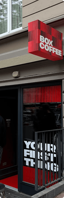 Плакат для кофейни. Большой кот Мявка и его маленькая кружечка с «я-не-я без» напитком